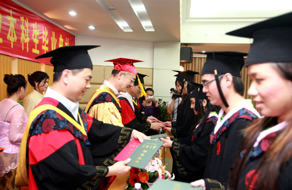 与会领导为毕业生颁发本科毕业证书和学士学位证书