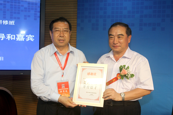 学员代表、韩国《知己知彼中国新闻报》社长李长作向国务院侨办宣传司赠送感谢状