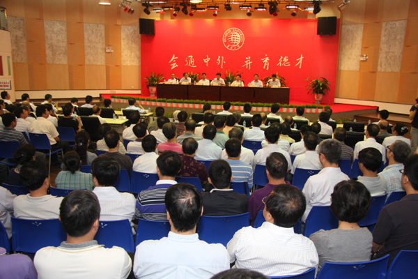 22日下午,华侨大学在洪祖杭大楼四层明德堂召开教师干部大会,国务院侨办人事司司长许玉明宣读了国侨办党组《关于华侨大学领导班子主要负责同志调整任免的决定》。国侨办副主任马儒沛、侨办文化司副司长李民、暨南大学校长胡军等出席大会。华侨大学党委书记李冀闽主持教师干部大会。