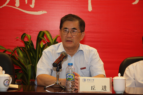国务院侨办副主任马儒沛在会上作重要讲话。他肯定了丘进在华大期间的工作成就,称其为人为师的人格魅力给华大师生留下了深刻的印象,在其领导下学校的教学、科研、学科建设、党政管理、校园文化等取得了长足的进步,为学校的可持续发展作出了突出贡献。