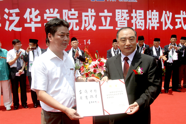 李冀闽首先宣布泛华学院理事会成立及该院干部任命文件:林昌华出任泛华学院名誉院长,吴季怀任泛华学院理事会理事长,陈庆俊任院长,泛华矿业股份有限公司武毅为副院长。贾益民为福建泛华矿业股份有限公司董事长林昌华先生颁发华侨大学泛华学院名誉院长聘书。