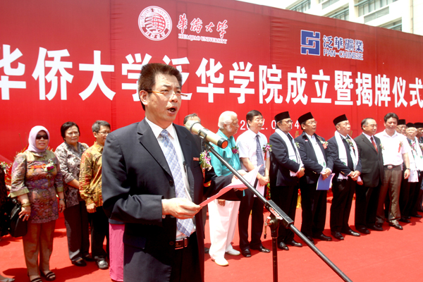华侨大学泛华学院成立暨揭牌仪式今日上午在厦门校区隆重举行。据称,此举是华侨大学进一步创新对外合作形式,以进一步推进华文教育向纵深发展,推动中印在经济、教育和文化领域的往来。华侨大学泛华学院成立以后,将以提升学生的国际交流能力和实践能力为目标,紧密结合海外社会经济发展需要,为海外社会培养特色专门人才;并为华侨大学泛华学院印尼分院的建成、扩大在东南亚的招生和侨教工作做出贡献。