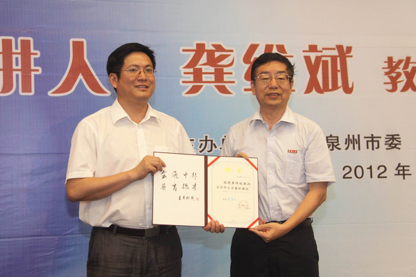 校党委书记李冀闽为龚维斌教授颁发华侨大学兼职教授聘书