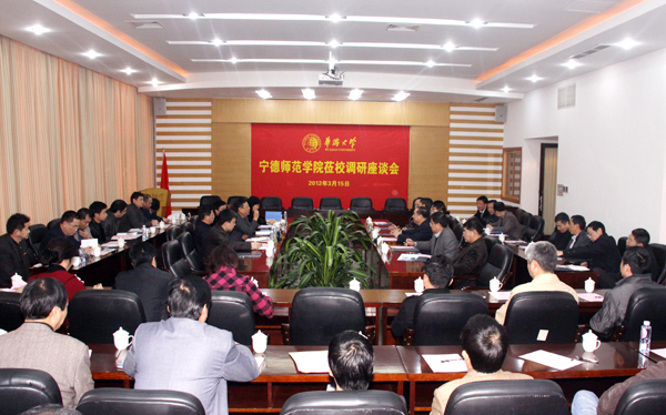 15日上午,宁德师范学院党委书记江小源,院长林跃鑫,副书记林朝忠,副院长谢向东、许志红,及该校职能部门负责人和部分教师一行40余人来校调研。
