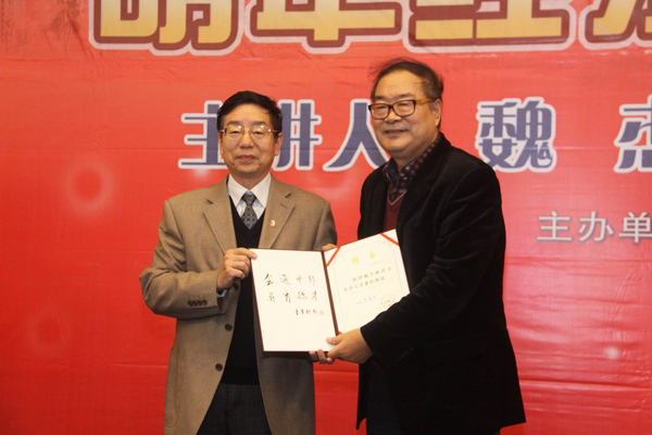 校党委书记李冀闽向魏杰颁发华侨大学兼职教授聘书及“华大讲堂”主讲嘉宾纪念牌