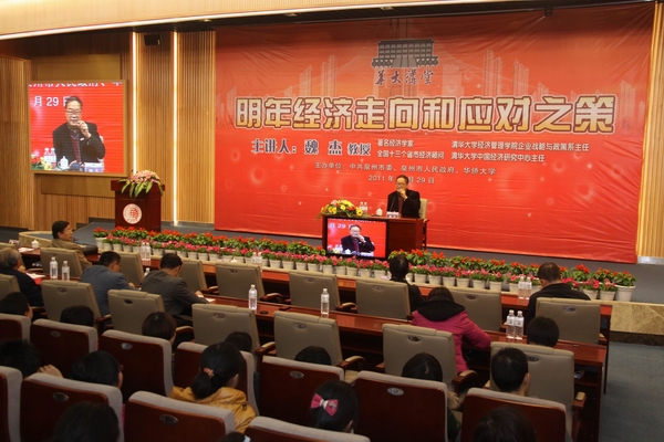 29日下午,著名经济学家、全国十三个省市经济顾问、清华大学经济管理学院企业战略与政策系主任、清华大学中国经济研究中心主任魏杰教授做客“华大讲堂”,作题为“明年经济走向和应对之策”的演讲。这是“华大讲堂”开办三年来的第26讲,也是2011年的最后一讲。