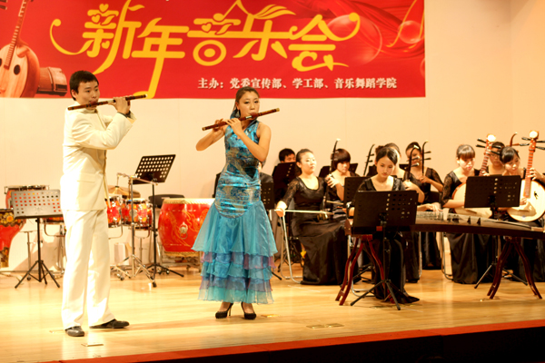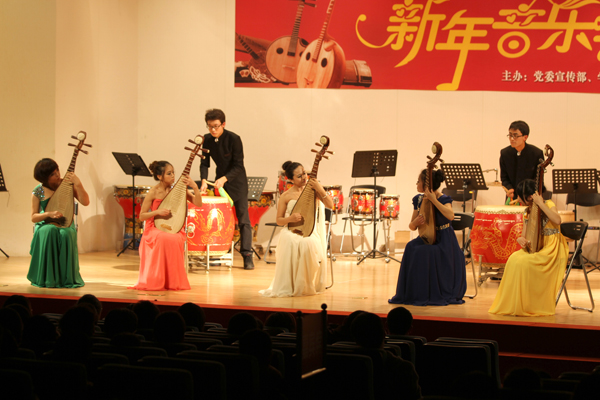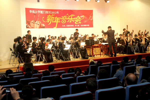 一台具有浓郁中国民族特色的新年音乐会,29日晚在华侨大学厦门校区上演,吉祥欢快的音乐,为即将到来的2012年元旦增添喜庆气氛,为华园师生送上新年的美好祝福。