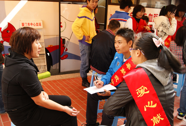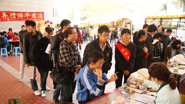 近日,由厦门市中心血站主办爱心献血协会承办的无偿献血活动在我校厦门校区食堂二楼小广场举办。此次共有107人参加献血,总计献血量达30100毫升。