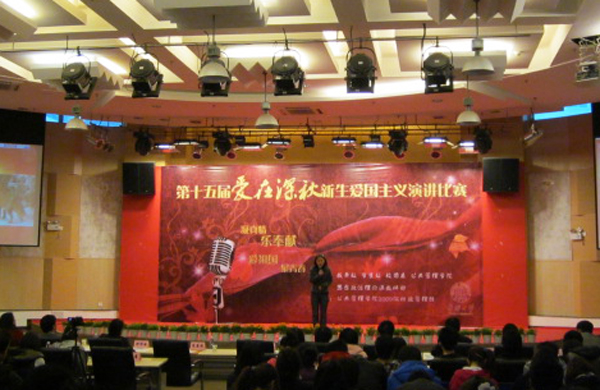 经班级初选和预赛,14名选手晋级决赛,分别作《塑民族英魂,展我青春风采》、《大学生你怎么了》、《永生的中国,永远的爱国情》、《中国力量》、《爱——飘落在华园》等14个精彩的主题演讲。演讲中,选手们以各具特色的演讲风格,或激昂,或柔情,或平实,表达对祖国和母校的热爱之情。