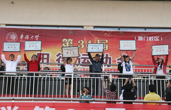 经过两天的激烈较量,各项成绩决出。学生组男女团体总分前六名分别为:土木工程学院、华文学院、化工学院、机电及自动化学院、材料科学与工程学院、厦门工程技术学院;教工组团体总分前六名分别是:华文学院、机电及自动化学院、土木工程学院、化工学院、哲学与社会发展学院、建筑学院。获得学生男子组团体总分前六名的分别为:土木工程学院、机电及自动化学院、化工学院、信息科学与工程学院、厦门工程技术学院、材料科学与工程学院;获得学生女子组团体总分前六名的分别是:华文学院、化工学院、土木工程学院、材料科学与工程学院、音乐舞蹈学院、建筑学院。