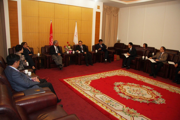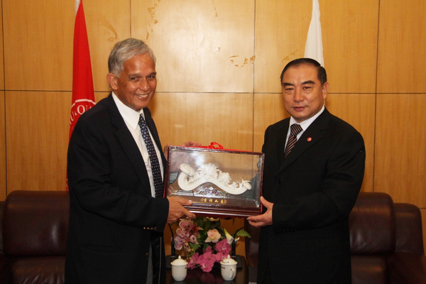 会谈结束后,我校董事会副董事长陈守仁专程赶到我校,祝贺两校喜签合作备忘录。