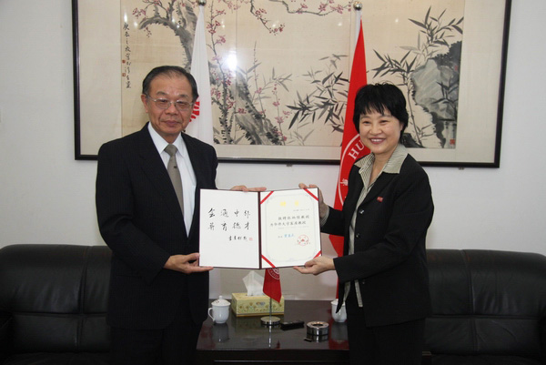 朱琦环为张炳煌颁授客座教授聘书并佩戴校徽