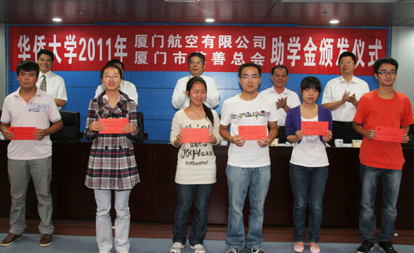 据悉,2004年,厦门航空有限公司联手厦门市慈善总会设立“厦航慈善助学基金”。2005年,该基金资助了我校120名贫困学生。今年8月,厦门市慈善总会主动关心并资助我校今年录取的12名厦门籍贫困新生,我校也根据其家庭经济困难情况给予持续关注,并及时纳入“新生阳光成长计划”。此次厦门航空有限公司、厦门市慈善总会慷慨捐资15万元用于资助我校100名家庭经济困难学生,体现其对爱心事业满腔的热忱。