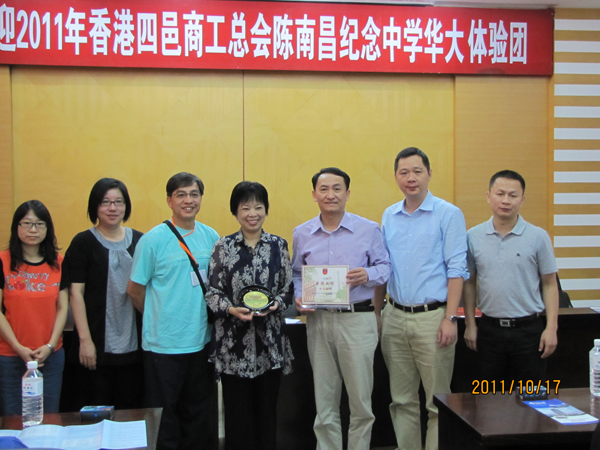 应我校邀请,香港四邑商工总会陈南昌纪念中学校长陈爱坚带领师生一行42人于10月16日至17日来校参观交流。