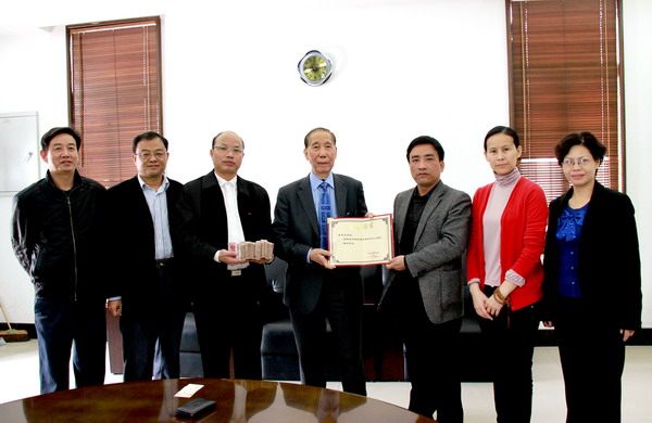 陈旋波副院长为蔡永亮校董(左四)颁发捐赠荣誉证书