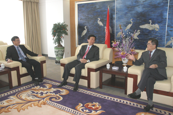 丘进向黄家定、何国忠简要介绍了华侨大学的办学状况和办学特色,他重点就海外招生、境外生培养教育以及与马来西亚的教育交流进行阐述。丘进说,马来西亚是华侨大学最早进行教育交流的东南亚国家之一,从20世纪90年代开始就有学生来校就读;华大在马来西亚华侨华人社团、马中关系方面也进行了一定的研究,取得了一些成果,希望能够在两位的关心下,进一步拓展华大与马来西亚的教育交流。
