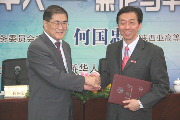 黄家定、何国忠认真询问华侨大学在马来西亚的招生情况以及马来西亚学生在校的学习情况,充分肯定学校的办学定位和成绩,并表示将会继续支持华侨大学的有关工作。