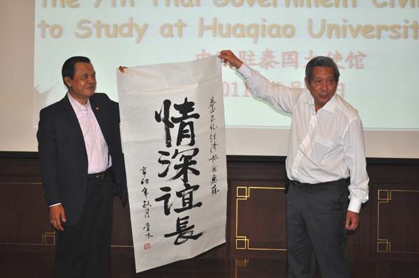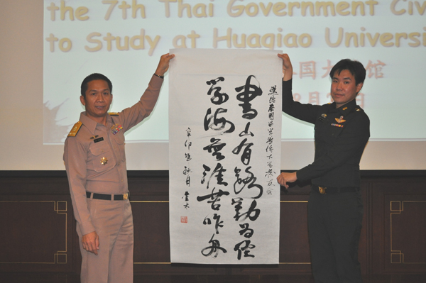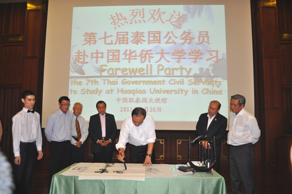 8月27日晚,中国驻泰国大使馆为华侨大学“外国政府官员中文学习班”学员举行了隆重的欢送仪式,欢送本届奖学金学员赴中国华侨大学深造。