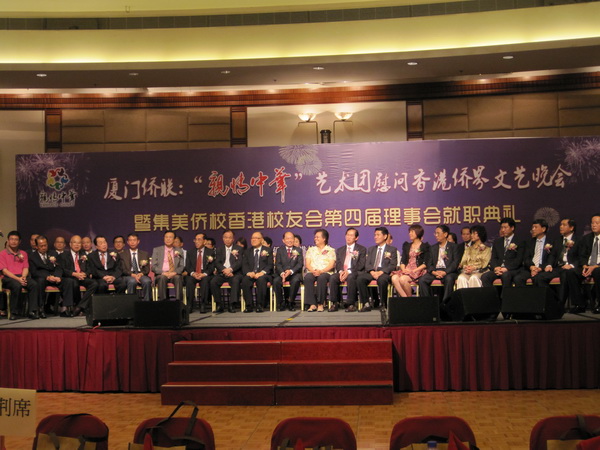 集美侨校香港校友会第四届理事会就职典礼日前假香港九龙湾国际展贸中心举行,1300多名嘉宾和历届集美侨校校友欢聚一堂,共贺集美侨校香港校友会新一届理事会的诞生。华侨大学华文学院党总支书记、学院校友总会会长赵明光7日率办公室主任邹琍琪、校友会负责人古华良赴港参加本次典礼。