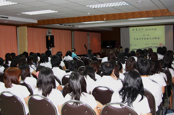 本场讲座是中华文化系列讲座的首讲,此后,在8月至12月间,农业大学孔子学院还将举办5场分别用中文、泰文两种语言介绍关于中华文化方面内容的讲座。