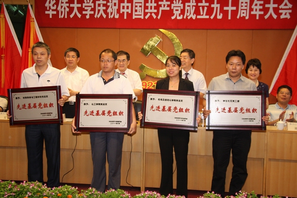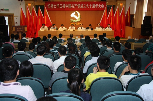 九十载风雨兼程,九十年铸就辉煌。在中国共产党成立九十周年之际,我校于6月30日下午在陈嘉庚纪念堂科学厅隆重召开庆祝中国共产党成立九十周年大会。校领导李冀闽、关一凡、朱琦环、吴季怀、徐西鹏、刘塨、张禹东、刘斌,校长助理张云波、曾路分别在两校区出席大会。大会由党委副书记、校长丘进主持。