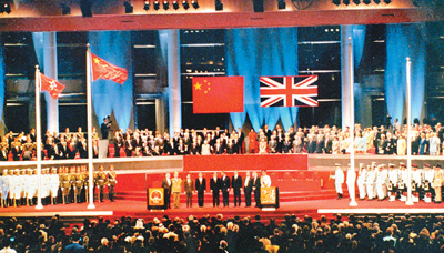 这是1997年6月30日至7月1日凌晨,中英香港政权交接仪式在香港会展中心举行。新华社发
