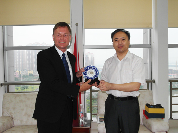 陪同来访的还有德国BSK国际教育机构执行总裁费康安博士、德国BSK国际教育机构驻华代表陈钢、德国BSK国际教育机构驻华代表助理范飞,华侨大学经济与金融学院副院长刘向晖教授、国际交流学院副院长谢友福副教授等会见时在座。