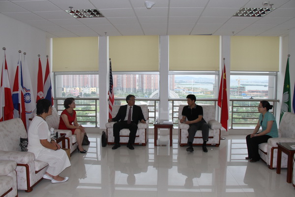 6月22日下午,美国欧爱科大学大学校长Jongin Kim、语言部主任Jung-Ae Lee一行访问我校厦门校区。华文教育办公室主任赵明光接待了美国客人。
