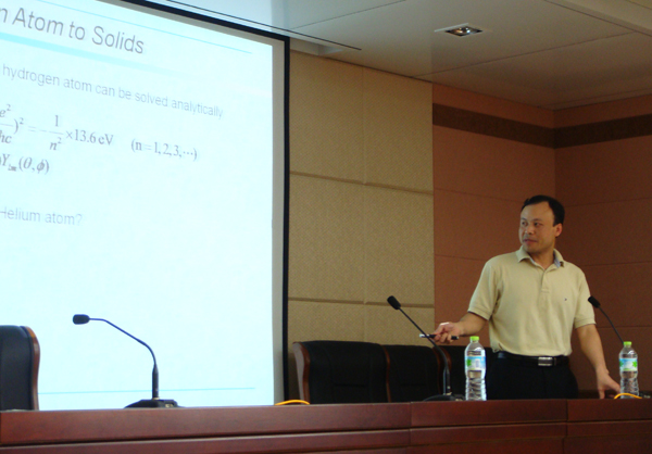 13日下午,美国纽约州立大学水牛城分校张培鸿副教授在机电信息大楼A209室作了题为“根据第一性原理设计新型材料”的学术报告,信息学院院长王加贤教授、部分教师和研究生与会听取报告。