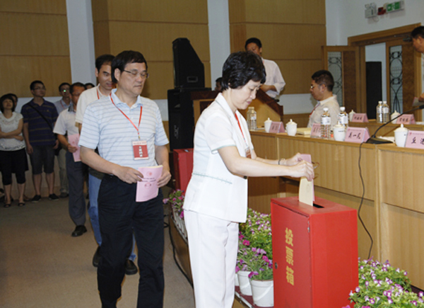 与会代表投票选举第六届教代会执委会、工会委员会委员和工会经费审查委员会委员