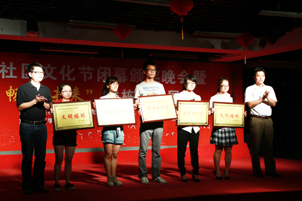 学生处副处长谢俊荣,学生社区中心、校团委和各学院老师观看了晚会,并为第十一届学生社区文化节各项目获奖同学颁奖。