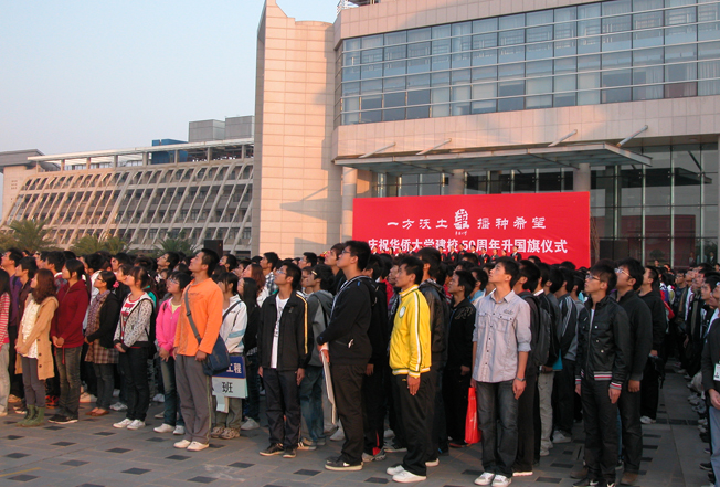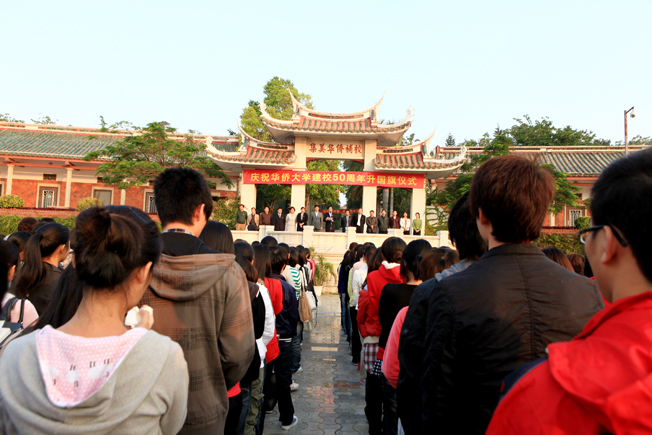 2010 年 11 月 1 日,是华侨大学建校五十周年纪念日。今日上午 7 时整,华侨大学在泉州校区承志广场、厦门校区行政研发大楼A区广场和华文学院南门广场同时举行升国旗仪式,隆重庆祝华侨大学建校五十周年。 校领导丘进、李冀闽、关一凡、朱琦环、吴季怀、徐西鹏、刘塨、张禹东、刘斌,校长助理彭霈、张云波、曾路及数千名师生出席升旗仪式。