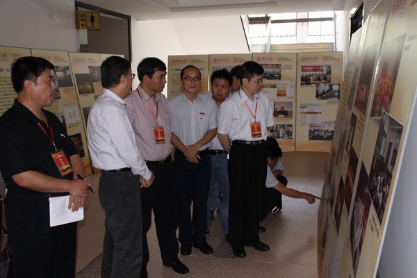 考评组一行参观特色展板