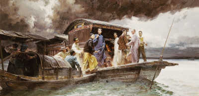 由于会场受到外国巡捕搜查和暗探的注意,一大代表李达的夫人王会悟安排代表们陆续转移到浙江嘉兴,在南湖的一艘游船上召开了最后一天的会议。