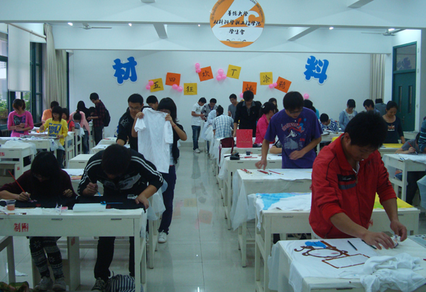 值五四青年节来临之际,材料学院举办建党九十周年系列活动之T恤涂鸦大赛,旨在让广大华大青年通过这种展示自己青春活力的方式诠释五四精神在新时代光辉照耀下的精华—创造与奋进,也让华园学子在青年人自己的节日中充分展示当代大学生的青春风采,丰富校园文化生活的同时,以此倡导校园新风尚,弘扬朝气蓬勃、奋发向上的时代精神,激励华园学子团结、奋进、求实、创新,明确作为青年人的社会责任和使命,以更饱满的激情投入学习生活,以青年人特有的方式共迎建党90周年。