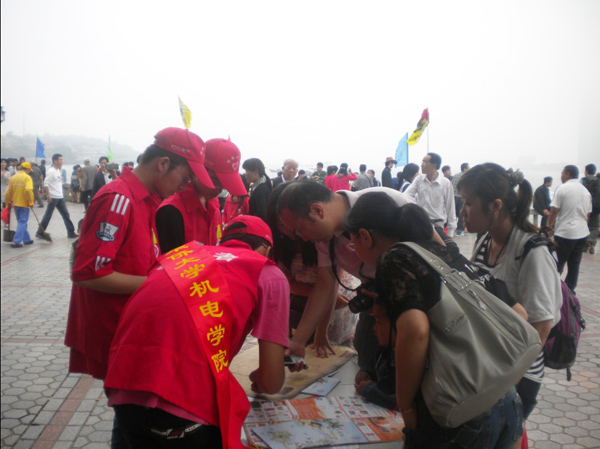 “五一”期间的厦门细雨绵绵,但这丝毫没有影响到志愿者的热情。他们分组行动,各自负责一个小区域,最大范围的为游客指引路线。面对游客的千奇百怪的问题,他们都积极面对,为游客提供了优质的服务。面带微笑站立在风雨中的志愿者,与撑伞的游客构成了一道亮丽的风景线,用爱心和耐心诠释着机电学院Love Club的“聚集爱心,快乐服务”的宗旨。