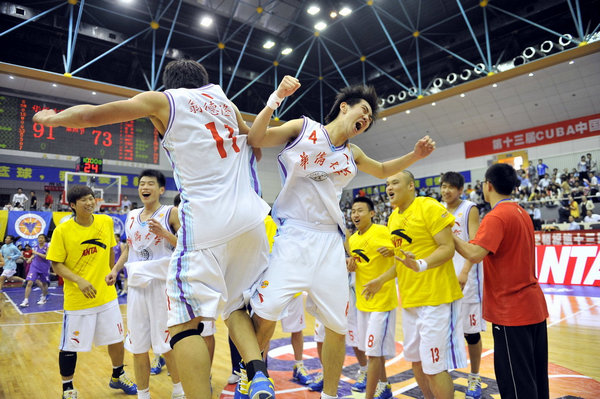 第十三届CUBA中国大学生篮球联赛东南赛区比赛于本月18日在浙江大学正式拉开帷幕。华大男篮在小组赛中三战三胜,先后战胜集美大学、绍兴文理学院、南京理工大学,并在淘汰赛中打败浙江师范大学、华东师范大学和宁波大学,昂首挺进赛区冠亚军争夺战。昨日下午,华大男篮又在东南赛区决赛中以91:73击败浙江大学男篮,成就了东南赛区 “十连冠”的伟业。