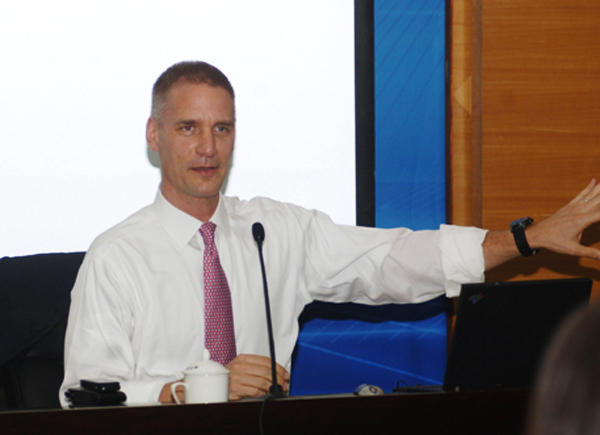 应工商管理学院邀请,高盛集团(新加坡)联合总裁Tim Leissner博士于15日下午在陈嘉庚纪念堂二楼会议室为华大师生作了题为“大型公司财务交易案例研究”的精彩报告。