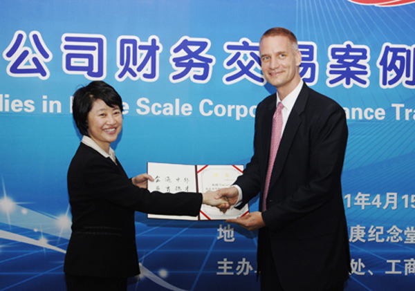 朱琦环为Tim Leissner颁发华侨大学客座教授聘书