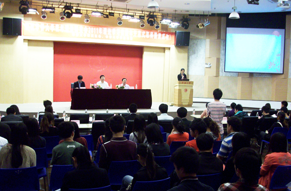 4月19日晚,华侨大学青年理论研究会2011年理论学习实践年在明德堂隆重开幕。学生处处长陈国柱、研究生处副处长林诗锋等出席开幕式,青年理论研究会会员,校研究生会代表、学生会代表,及各研究生分会代表与会。