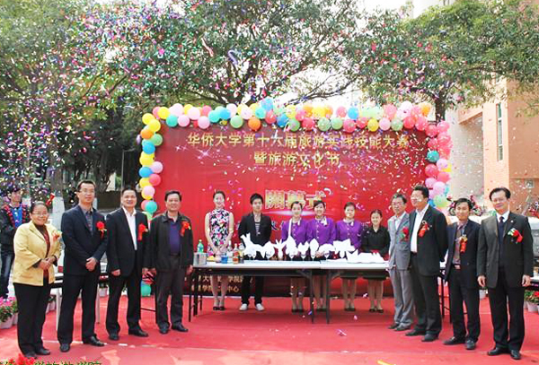 华侨大学教务处处长池进、学生处处长陈国柱、实验室与设备管理处处长伍扬、校团委书记李庭志、科研处副处长黄安民、后勤处副处长李永松出席开幕式,并欣赏了由旅游学院学生表演的口布折花、鸡尾酒调制和铁观音茶艺等特色节目。