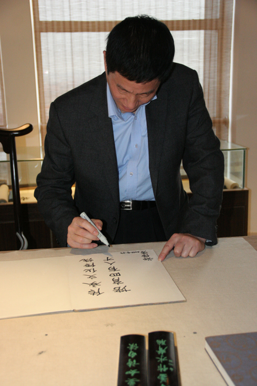 郑传芳在四端文物馆为我校题词“传承文化传统,培育四有人才”