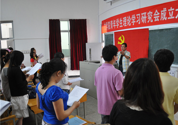 2010年5月4日,文学院学生党支部成立了全校第一个“青年学生理论学习研讨会”,并结合新时期青年广泛使用网络的特点,支部党员全员参与,创办了学生党支部博客和QQ群,及时上传文件精神、热点事件、优秀思想汇报和党员讨论心得,为党员之间的学习交流和进步提供了广阔的平台。