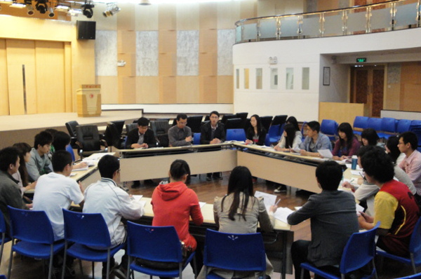 李庭志首先就如何构建校院两级团委学生干部工作交流的良好平台提出自己的看法,并希望大家能在一个轻松互助的氛围内完成工作的交流与合作。随后,黄炳超对本学年团委工作要点进行了解读,并就近期主题团日、创意作品展等工作做出相应安排。