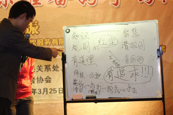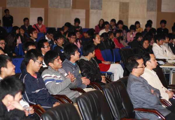 邱尚振2001年毕业于华侨大学工商管理系,2004年创立厦门临家餐饮服务有限公司,学生时代曾和同学一起参加“挑战杯”中国大学生创业计划竞赛并获得银奖。享有“美食一哥”大号的邱尚振以“红尘”论开篇,引导学生要观察社会,以学为用。他在白板上写下的“有知识”不等同于“有智慧”,“懂规则”不如面对“潜规则”,“有道理”不一定“有用”的感悟,给同学们留下了深刻印象。他随后从经脉、内功、招式、心法这四个练功层次来讲述提高创业境界的途径。最后,邱尚振总结道,一个人最重要的是要有追求,没有什么事是可以百分之百成功的,而获得成功的关键因素是爱和胸怀。邱尚振校友犀利真挚的演讲深深触动了现场学生,为同学们今后的创业、求职甚至献上了精彩的一课。