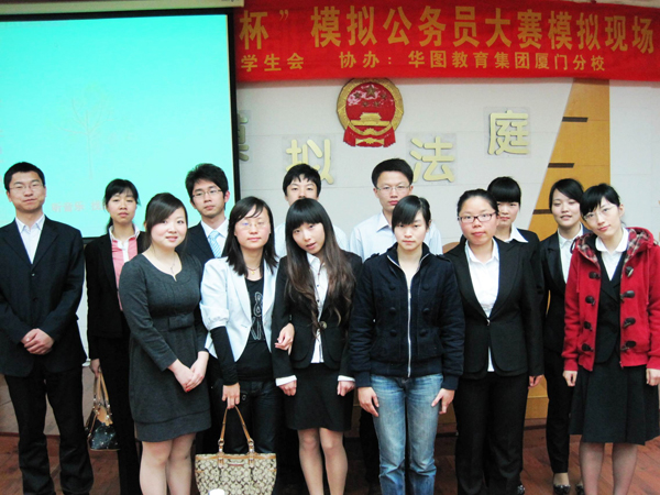 作为2011年华侨大学模拟公务员考试系列活动的最后环节,此次面试特别邀请了泉州市中级人民法院民三庭庭长、国家高级法官王佳华,泉州市中级人民法院行政庭庭长马雯卿,南安市人民检察院团支部书记王妍,共青团南安市委组织部长李文庚,泉州市国土资源局法制科干部高颖,泉州市环境保护局干部汤奇月等6位来自一线政法系统和党政机关的公务员作为面试考官,多数考官具有国家公务员面试官资格。
