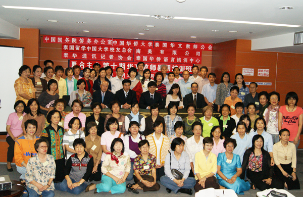 为推动泰国华文教育的发展,提高华文师资的汉语水平和教学实践能力,由国务院侨务办公室、华侨大学和泰国华文教师公会、泰国留学大学校友总会、泰国南美有限公司、泰华通讯记者协会、泰国华侨语言培训中心等联合主办的第十期“泰国华文教师暑期培训班”曼谷教学点于3月23日上午在南美有限公司八楼举行开班仪式。