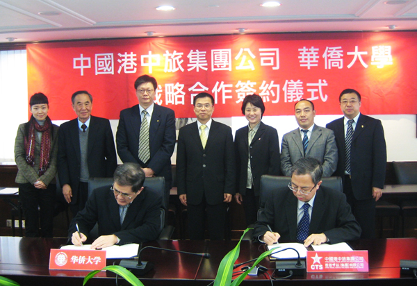 港中旅集团公司副总经理许慕韩,华侨大学党委副书记朱琦环、外事处处长项士敏、旅游学院院长郑向敏及华大香港办事处负责人一同见证签约。