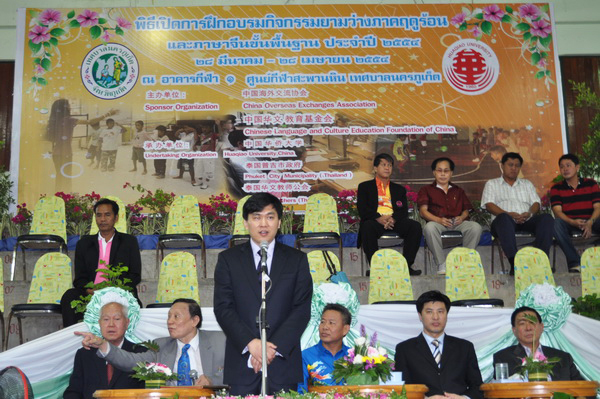 中国海外交流协会文教部副处长王梦黎在普吉营开营式上致辞