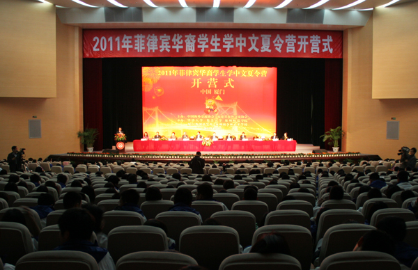 4月1日上午,2011年菲律宾华裔学生学中文夏令营开营仪式在集美大学诚毅影剧院举行。福建省副省长洪捷序出席开营式并为营员代表授旗。